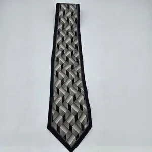 Zylos George Machado Necktie Gray Geometric Square Silk 58 X 4in Vintage