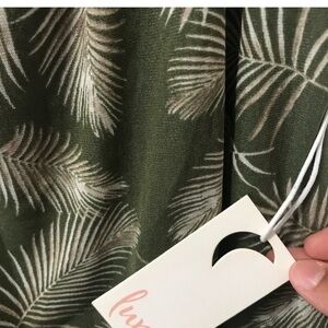 NWT Luna Palm Print Olive Blouse With Elastic Square Neckline Women’s Size Medium.