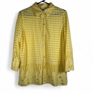 Alfred Dunner Women’s yellow button-down blouse long sleeve shirt, size Small