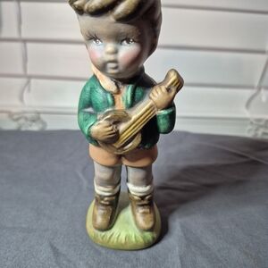 Add a touch of nostalgia to your home decor with this delightful set of vintage figurine boys! One boy is joyfully playing a drum, while the other showcases his talent with a banjo. These charming pieces are perfect for collectors or as whimsical accents in any room.