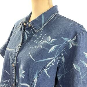 Requirements Shirt Women Sz XL Blue Floral Nautical Linen Blend Coastal Snap Top