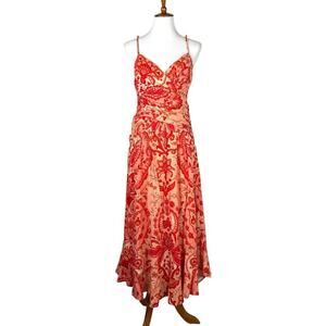 Farm Rio Red Jaipur Crossover Linen Blend Maxi Sundress Women’s Size Small NEW