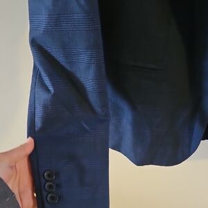 Sophisticated navy blazer with ryan pant. size 6 blaze, size 8 pants. Ideal for business or evening wear. Tailored fit with classic lapel.