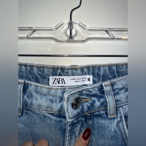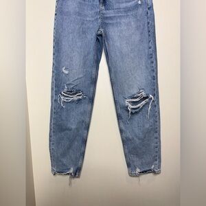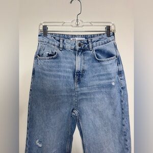Zara High Rise Distressed Mom Jeans Straight Leg