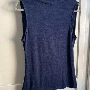 Stylish deep blue blouse with a draped front. Sleeveless design for versatile wear. Gorgeous fit and super soft so classy and elegant