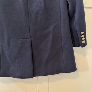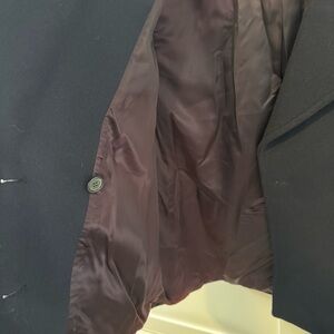Details: Features prominent gold-toned buttons and a notched collar. Bound buttonholes indicate a high-quality make.