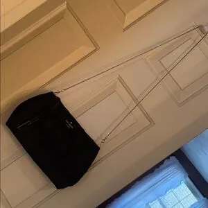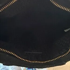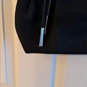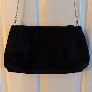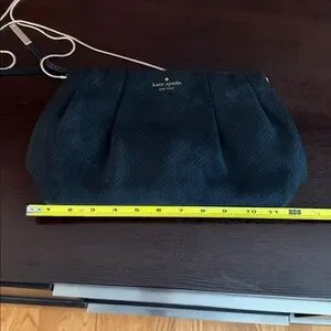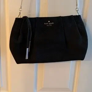 Chic black clutch by Kate Spade. Textured design, removable, gold strap, zipper closure detail. Gently used.