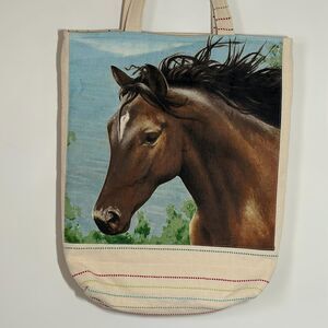 Handmade Tote Bag: Repurposed, Quilted Tote Horse Head Cottage Library Tote