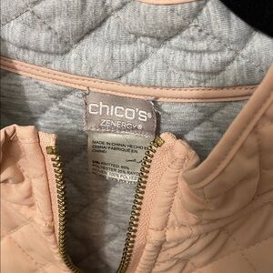 Elegant quilted vest by Chico's. Features a soft blush/light apricot color. Ideal for layering. Chico's size 2.