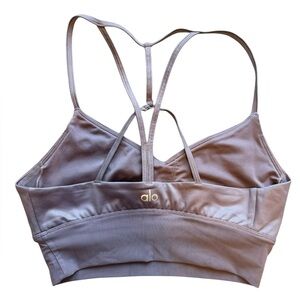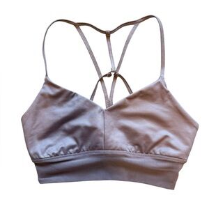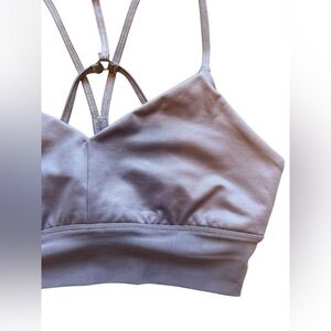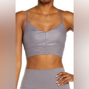 A cool strappy back puts a contemporary spin on this bralette-style sports bra crafted with a wide mesh band that supports and vents excess heat.