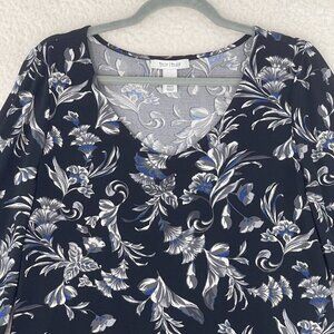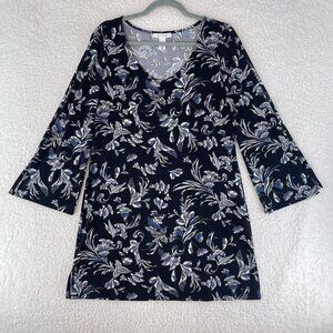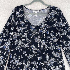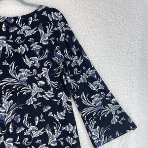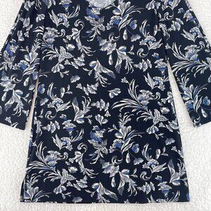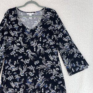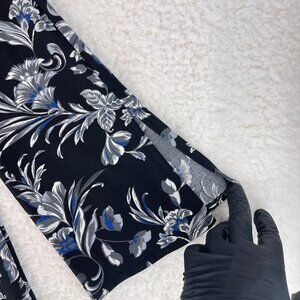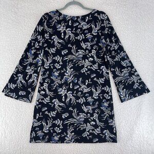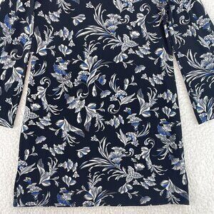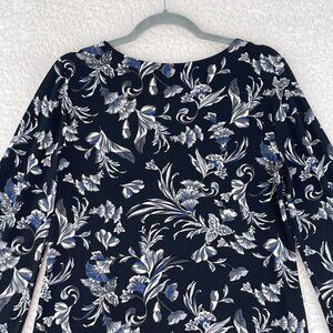 White House Black Market Black Floral Print Dress Womens 3/4 Sleeve Size Medium