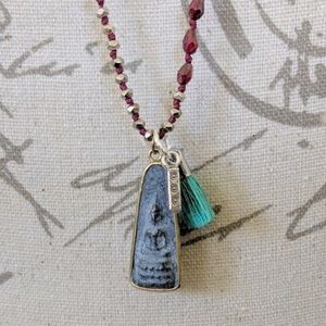 Sundance Catalog Long Beaded Garnet Red Buddha Amulet Pendant Necklace