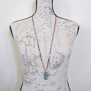 Beautiful hand-knotted bead necklace with a matching sterling silver pendant and turquoise tassel.