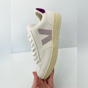 Step out in style with Veja's chic white and pink sneakers. Perfect for any casual outing, these shoes offer both comfort and elegance.