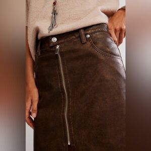 Free People Sycamore Vegan Brown Midi Skirt, Sz 27