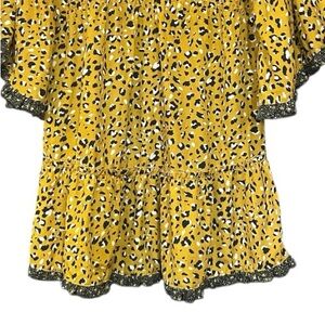 Umgee Leopard Print Bell Sleeve Tiered Mini Dress Ruffle Detail Tassel Tie Size Small