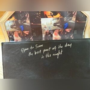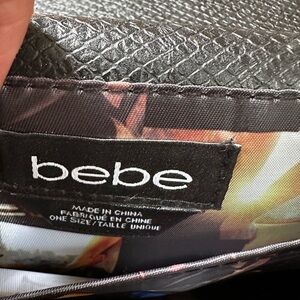 VTG 90s Bebe Signature Clutch Purse Handbag Black Gold Tone Two Compartments. Magnetic closure. Graphic print interior. Printed script on interior fold. Excellent condition. Never used. Please see pictures for measurements.