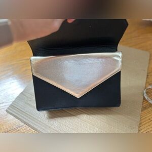 VTG 90s Bebe Signature Clutch Purse Handbag Black Gold Tone Two Compartments.