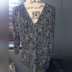 Nine West Womans 3/4 Sleeve Black/White Blouse Size L