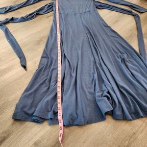 Peruvian Connection Blue Pima Cotton Modal Faux Wrap Midi Dress XS Quiet Luxury