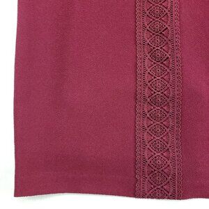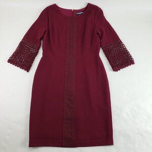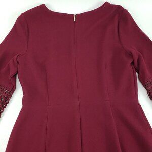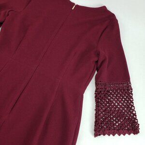 Karl Lagerfeld Lace Embroidered Dress Womens 8 Burgundy Knee Length 3/4 Sleeve