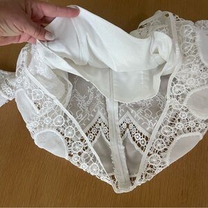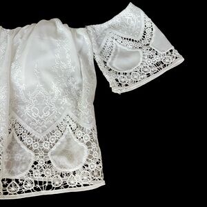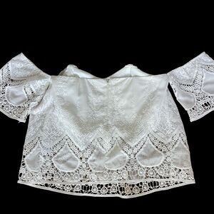 Lucy Paris White Lace Off-the-Shoulder Bustier Top Women’s Size S Eyelet Coastal