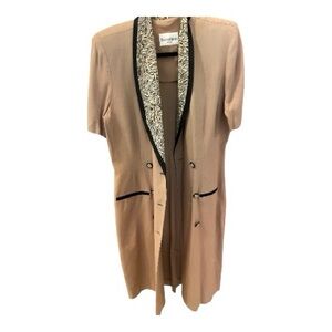 Vintage Danny & Nicole Double Breasted Zebra Print Collar Tan Dress.