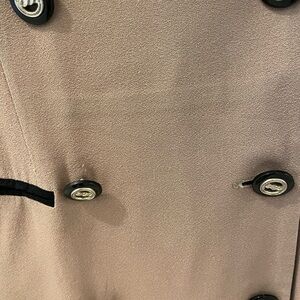 Dress has great buttons (6), glossy black with gold chain details.