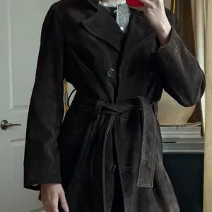 Real 100% Suede Chocolate Brown trench