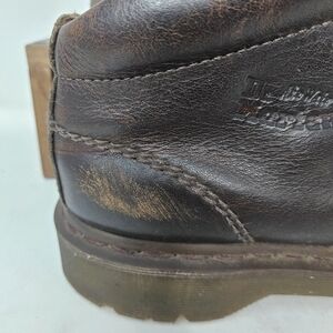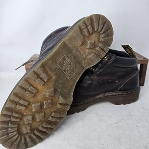 Dr. Martens men's low boots in size 12. They are brown in color and made of leather. Normal signs of wearing, in good pre-loved condition. Pictures show markings.