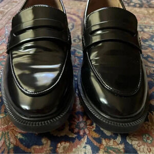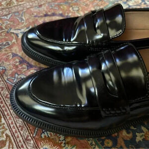 EUC barely worn Black leather patent loafers size EU 36 or US 5. Fits roomy like a 5.5. Like new! Flawless. So beautiful. Complete any outfit year round. So great with no show socks, tights, or fun ankle socks! Works with pants, shorts, dresses, jeans. Casual or dressy. To work or out at night or to school!