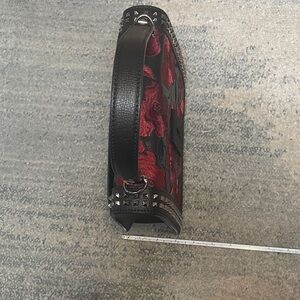 Chic crossbody bag with bold red floral embroidery. Black studded accents add edge. Perfect for any occasion. Brand New! Never used! Includes Dust Bag.
