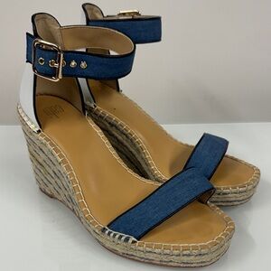 CAbi Blue Parker espadrille Denim Wedge Sandals 7