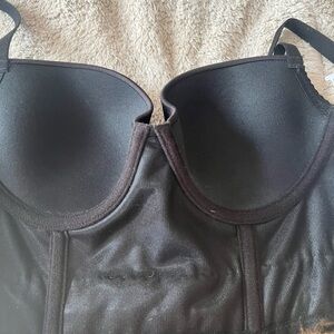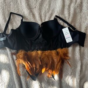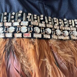 Elegant black bustier with striking feather and rhinestone embellishments. Perfect for a bold and stylish look. Never worn and in excellent condition like new!