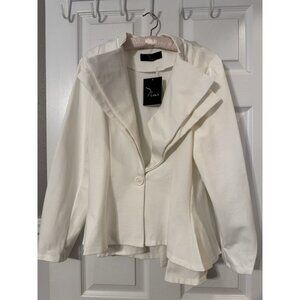 Noir women's Blazer in a women's size 1X. White Stretchy Ponte fabric. Unlined. Made of rayon/nylon/spandex.