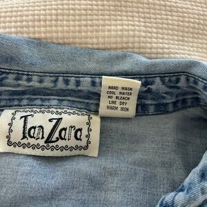 Tan Zara Vintage Women Teacher Denim Button Up Top Long Sleeve Artsy School Blue Pre-K