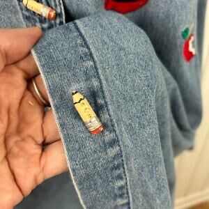 💗Sold💗not for sale💗Women Teacher Denim Button Up Top Long Sleeve Artsy School Bl