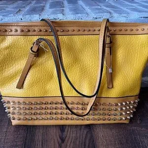 Large yellow bag with studs. This bag is big, and brand new without tags.