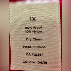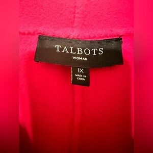 Talbot’s Woman Wool Double-Faced Wing Collar Open Jacket Solid Pink Size 1X
