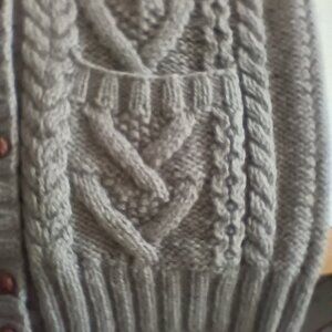 This grey hand knit Ralph Lauren sweater has a button front and 2 front pockets. Material: 100% wool. Please check the measurements carefully! Size: Medium, approximate measurements taken flat: pit to pit 19“, top of neck to bottom 32“, shoulder to shoulder 18“, should bottom 29“, inside sleeve 18“, outside sleeve 27“, bottom spread 19“. Good preowned condition, no rips, or tears. Have a question, just ask. Have an offer, make it.