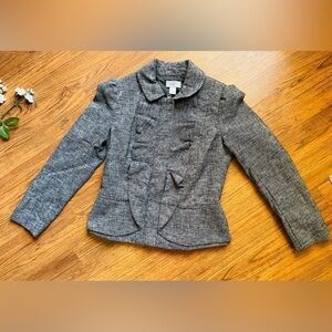 Ann Taylor LOFT Moto Jacket Charcoal Gray Black Ruffle Blend Size 6P Zip