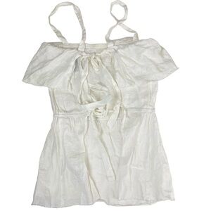 Reformation 100% Linen Ruffled Tie Back Top White Medium