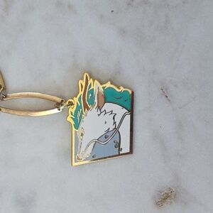 Studio Ghibli Spirited Away Haku key fob attached to a vintage goldtone chain.