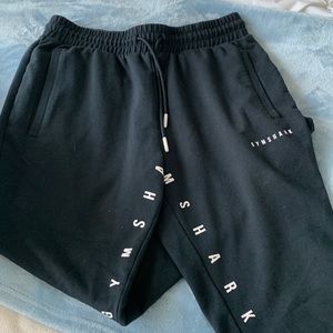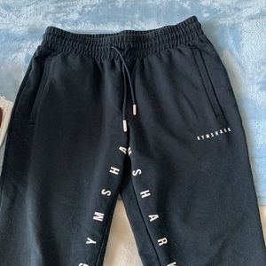 Comfortable black track pants. Elastic waistband with drawstring. Gymshark logo on the side.