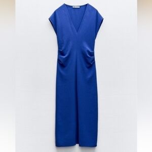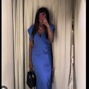 tags: midi blue bright v neck simple chic versatile party wedding guest date night sundress