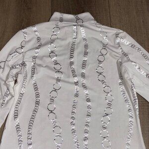 Color: White with silver chain print
