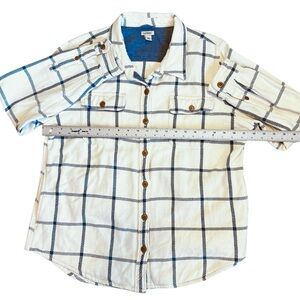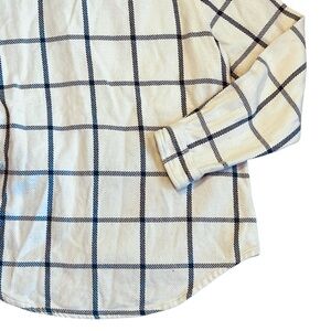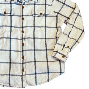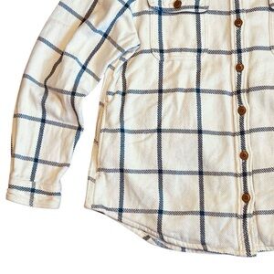 L.L. Bean Women’s Sz L Ivory Blue Plaid Heavyweight Flannel Button Front 1912 Overshirt Shacket. Excellent condition.
