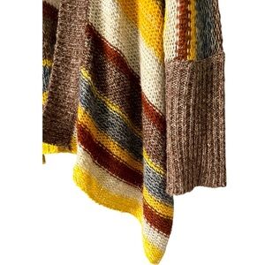 Coco + Carmen Open Front Asymmetrical Soft Striped Cardigan S/M Brown Yellow Bohemian Southwestern