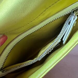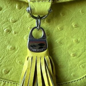 FRESH JUICY LEMONY COLOR OF OSTRICH DESIGN LEATHER WITH BRIGHT SILVER HARDWARE. THE TASSLE IS SUCH A BEAUTIFUL DETAIL!!!