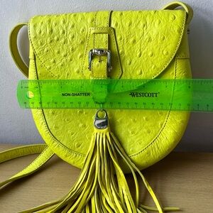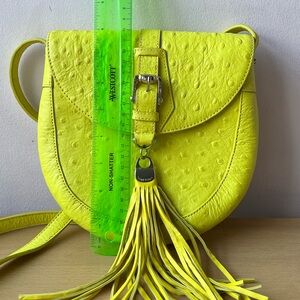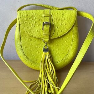 VINTAGE HENRI BENDEL LEMONY YELLOW OSTRICH LEATHER CROSSBODY TASSLE BAG RARE